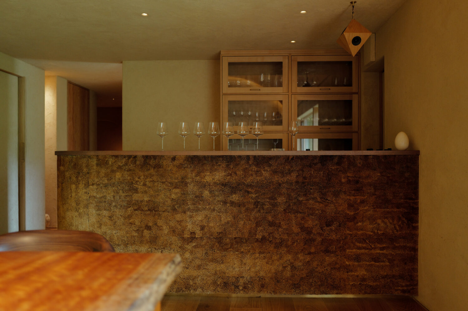 Restaurant Naz 2024 Restaurant Naz https://www.tablecheck.com/ja/naz 〒389-0115 長野県 北佐久郡軽井沢町 追分138-1 店舗内カウンター茅壁装飾