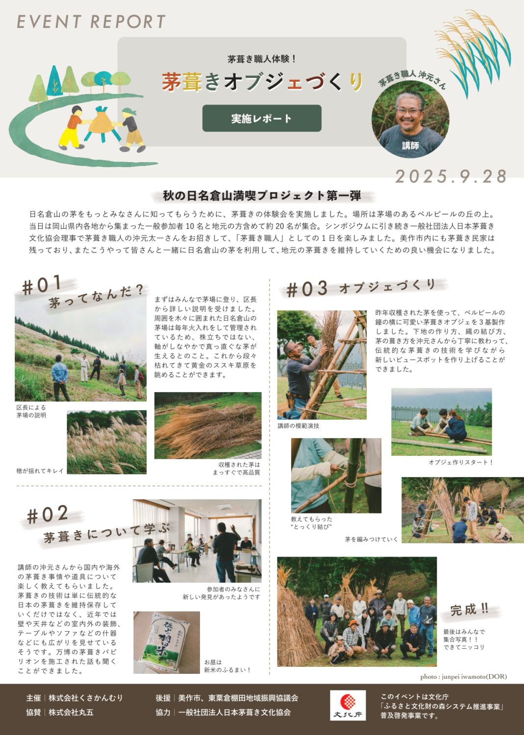 秋の日名倉山プロジェクト第1弾!2025/9/28(日)に開催した茅葺き体験会の実施レポートを作成しました。当日お越しいただけなかった方も、ぜひご覧ください。